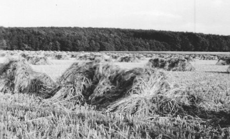 Die Garben wurden zum Trocknen und Reifen zu sogenannten "Hocken" zusammengestellt.
